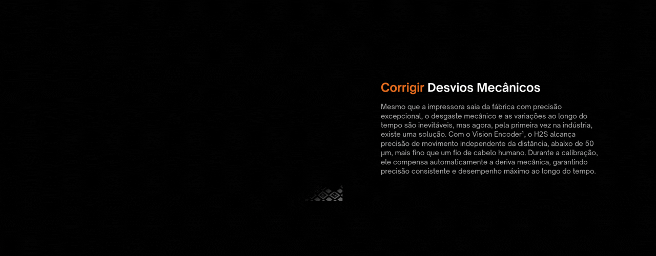 A Bambu Lab H2S foi desenvolvida para entregar alta precisão mesmo após longos períodos de uso. Com o sistema Vision Encoder, a impressora identifica e compensa automaticamente desvios mecânicos, garantindo movimentos mais estáveis e confiáveis.