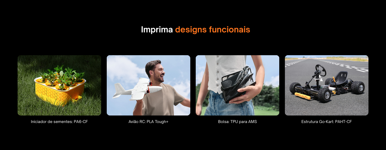Permite imprimir designs funcionais com alto nível de precisão, resistência e acabamento, atendendo desde protótipos até peças finais. Sua compatibilidade com diferentes materiais, incluindo filamentos técnicos e de engenharia, amplia as possibilidades de aplicação em projetos reais.