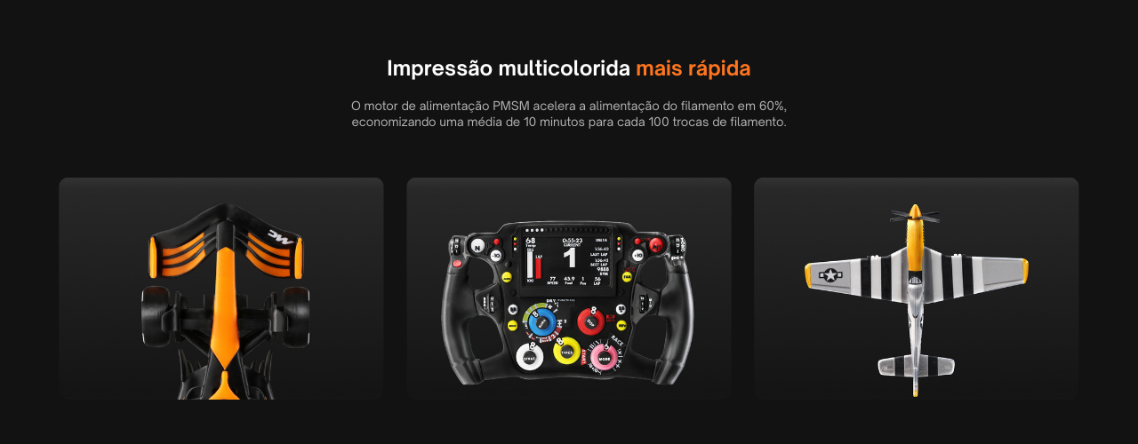 Na prática, isso representa uma economia média de até 10 minutos a cada 100 trocas de filamento, tornando projetos multicoloridos mais eficientes e produtivos. Mais velocidade para criações complexas, com o mesmo nível de acabamento e confiabilidade que você espera da P2S.