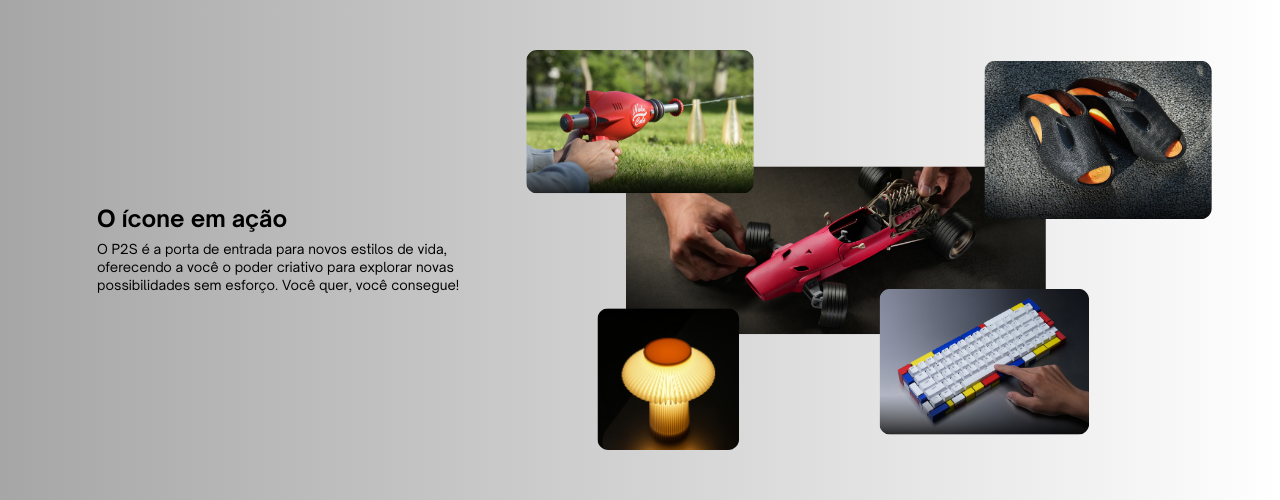 Seja para projetos criativos, peças funcionais ou hobbies do dia a dia, a P2S coloca o poder da impressão 3D nas suas mãos. Você imagina. A P2S faz acontecer.