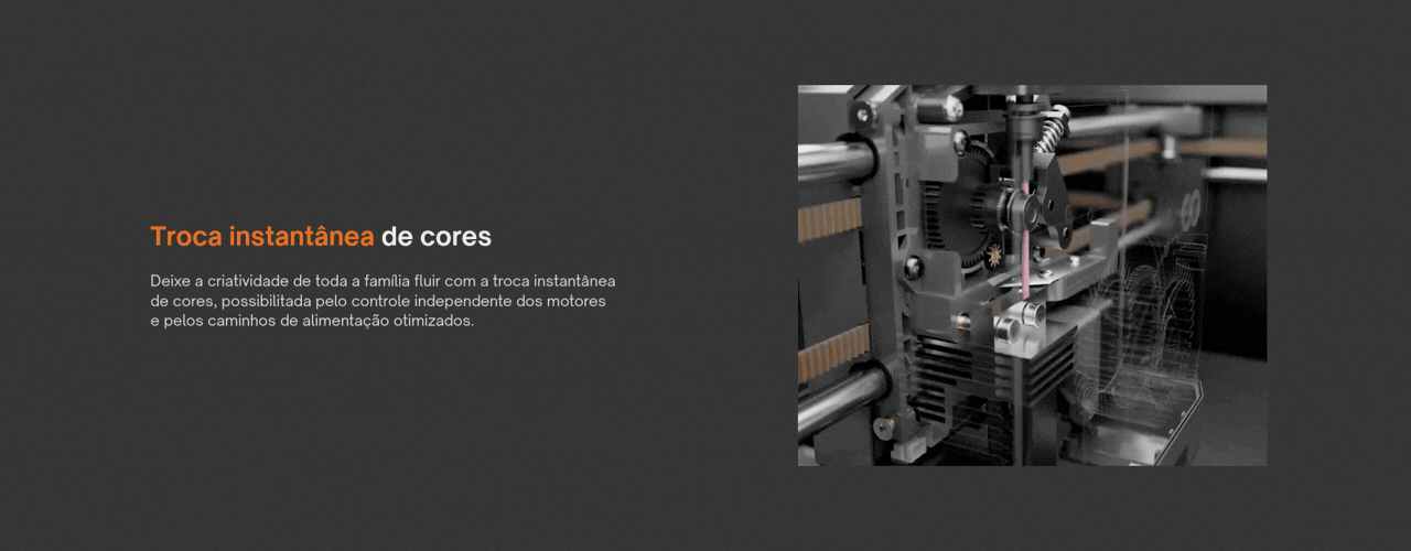 Com recursos como detecção inteligente de filamento, prevenção de emaranhados e reabastecimento automático, o sistema assegura uma impressão multicolorida estável, organizada e confiável. O resultado são peças com melhor acabamento visual, transições limpas entre cores e uma experiência de uso muito mais simples, mesmo em impressões longas.