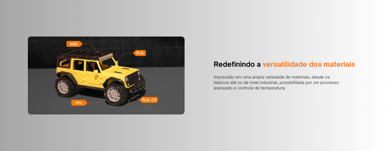 Essa versatilidade permite criar desde peças decorativas até componentes mais resistentes e funcionais, ampliando as possibilidades de aplicação em prototipagem, projetos criativos e uso educacional ou técnico. Uma única impressora, múltiplos materiais e muito mais liberdade para criar.