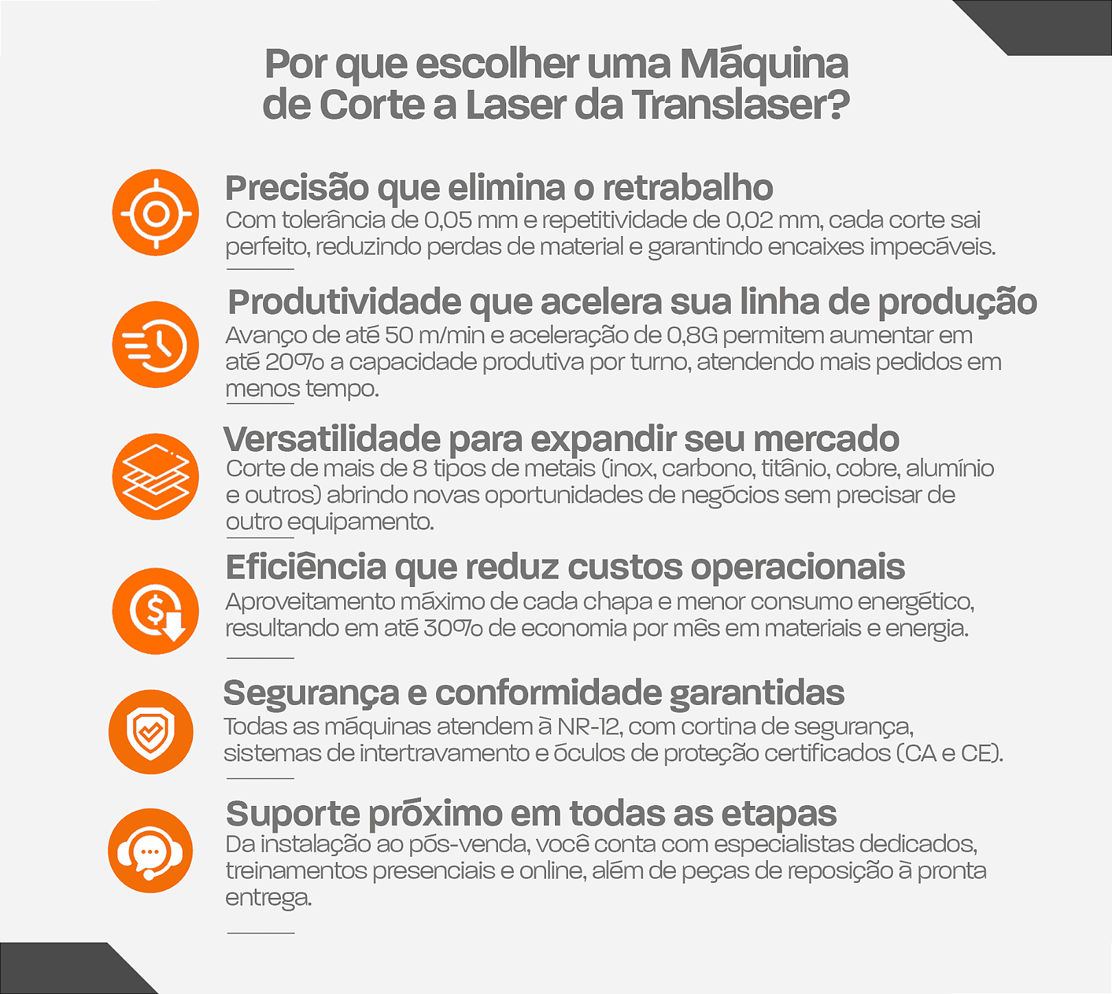 A linha TL da Translaser é a escolha ideal para indústrias que buscam cortes limpos e rápidos em diversos metais, com aproveitamento máximo das chapas, redução de custos e operação intuitiva. Com tecnologia de ponta, segurança certificada e suporte especializado, nossas máquinas garantem produtividade elevada e qualidade consistente em cada projeto.
