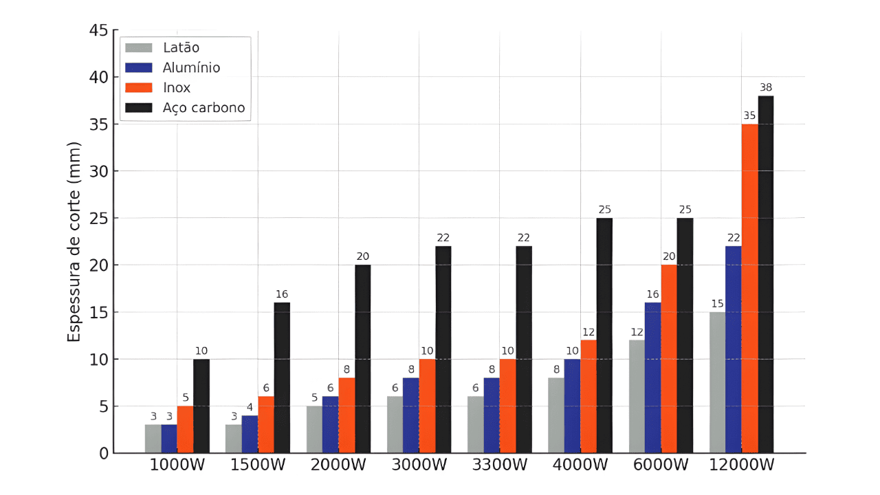Relação entre potência e espessura de Corte no Metal: