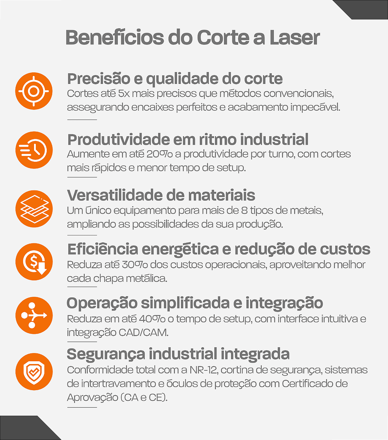 Combinando potência de corte, baixo custo operacional e automação avançada, seu propósito é claro: aumentar a capacidade produtiva, eliminar retrabalhos e manter padrões rigorosos de qualidade.
