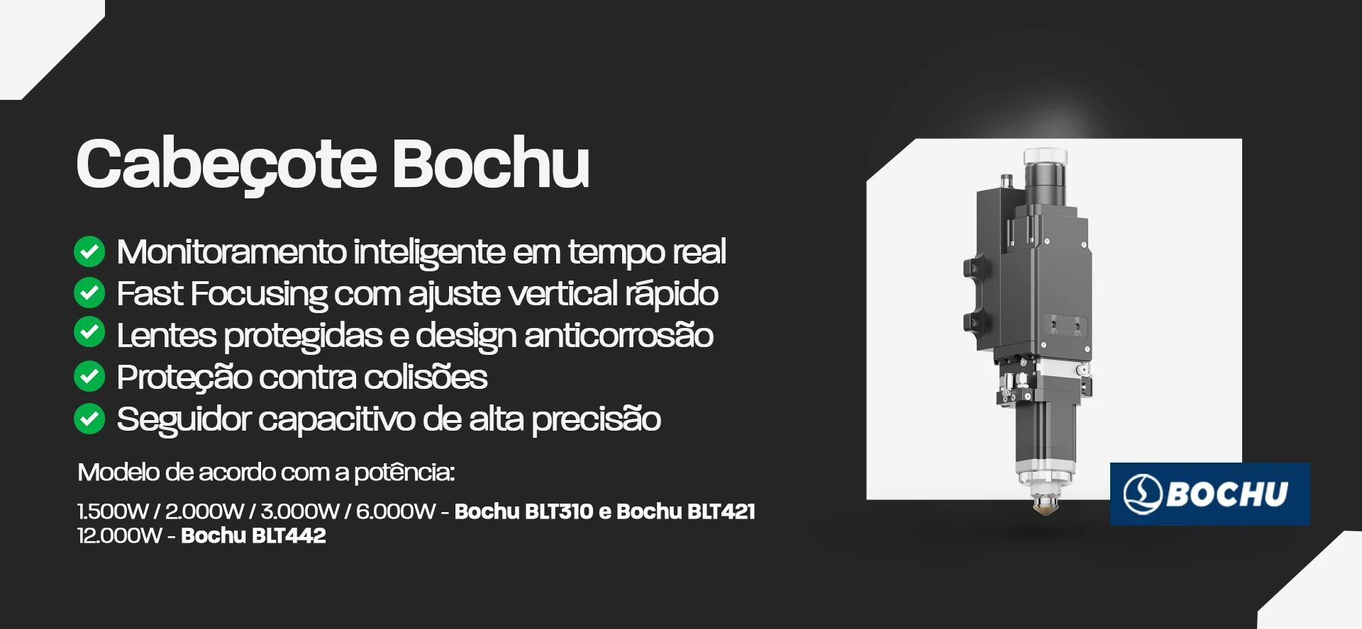 | Cabeçote de Corte | 1.500W / 2.000W / 3.000W / 6.000W - Bochu BLT310 - Bochu BLT421 / 12.000W - Bochu BLT442 |