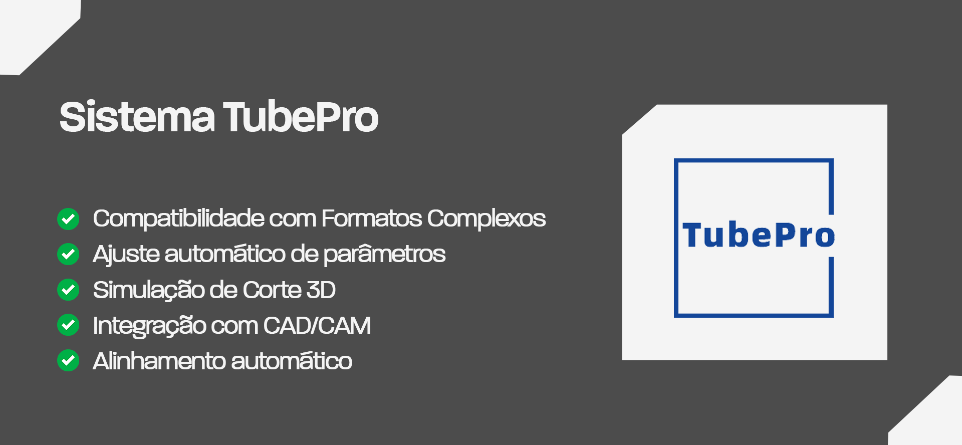 O TubePro é um sistema especializado e intuitivo que oferece total controle e precisão para o corte de tubos metálicos, incluindo formatos cilíndricos, quadrados e retangulares. Ele possibilita alta produtividade e otimização do processo.