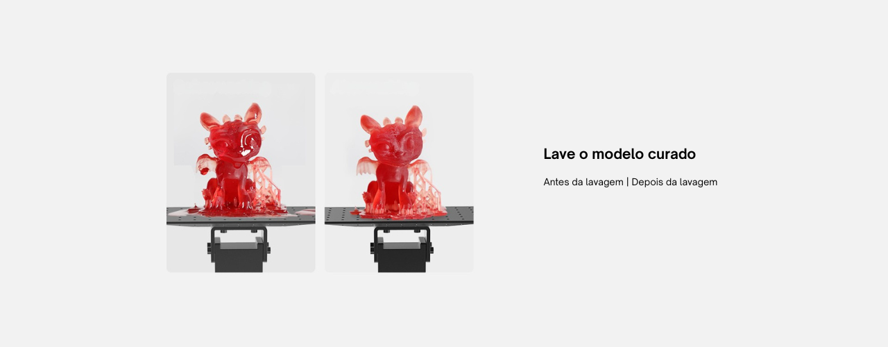 Após o processo de cura, a lavagem adequada do modelo é essencial para remover resíduos de resina e revelar todos os detalhes da impressão. A Creality UW-01 Wash & Cure garante uma limpeza eficiente mesmo depois da cura, melhorando o acabamento superficial e eliminando excessos que comprometem a aparência final da peça.